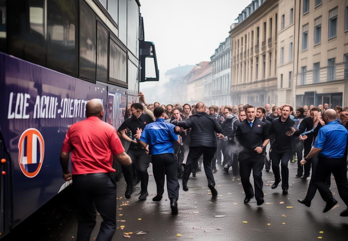 大巴車被迫轉(zhuǎn)移:在警方趕到現(xiàn)場(chǎng)后,斯特拉斯堡足球隊(duì)的大巴車被迫轉(zhuǎn)移至安全地帶。車內(nèi)球員和工作人員在經(jīng)歷了這場(chǎng)驚心動(dòng)魄的襲擊后,情緒極度不穩(wěn)定。他們?cè)诰降谋Wo(hù)下,離開了事發(fā)地點(diǎn)。